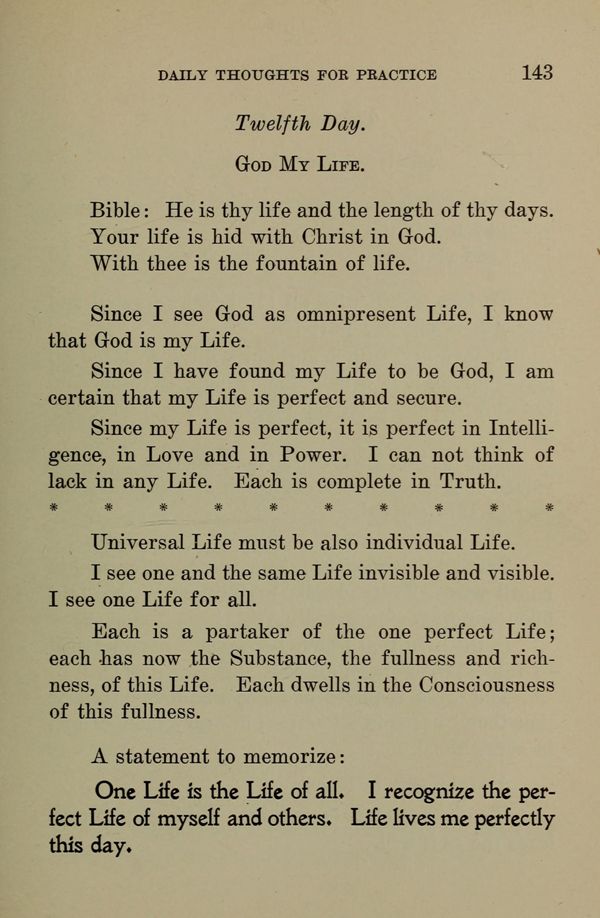 Since my Life is perfect, it is perfect in Intelligence, in Love and in Power. I can not think of lack in any Life. Each is complete in Truth.