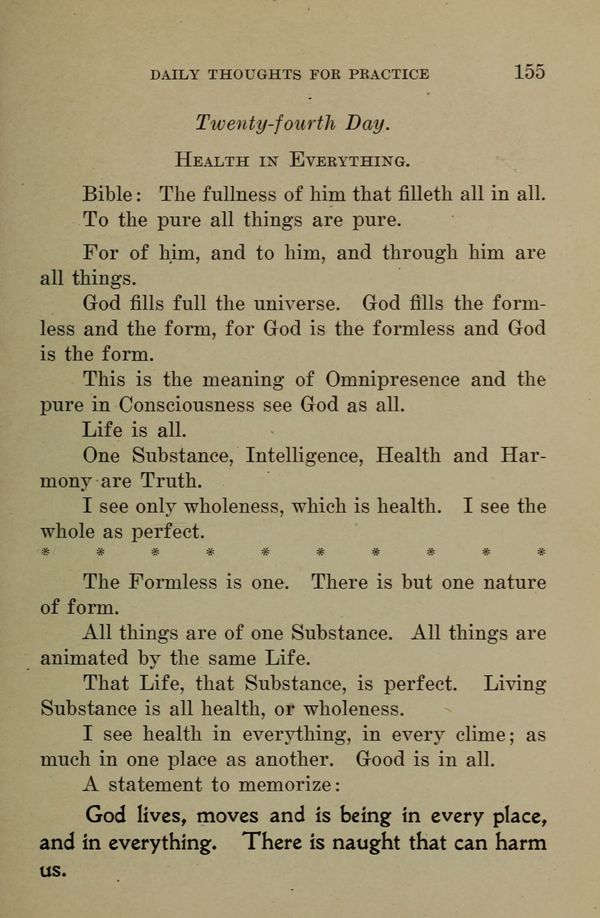 One Substance, Intelligence, Health and Harmony are Truth.