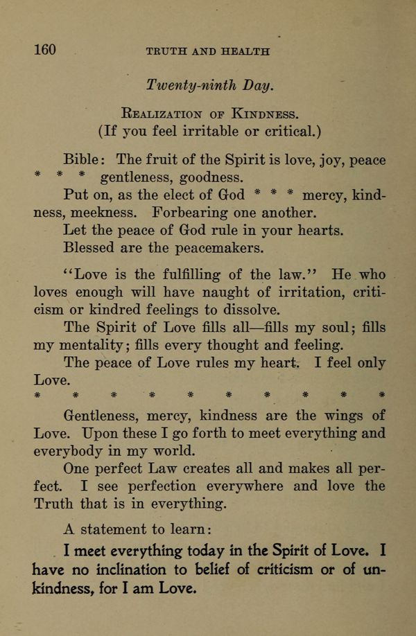 I meet everything today in the Spirit of Love. I have no inclination to belief of criticism or of unkindness, for I am Love.
