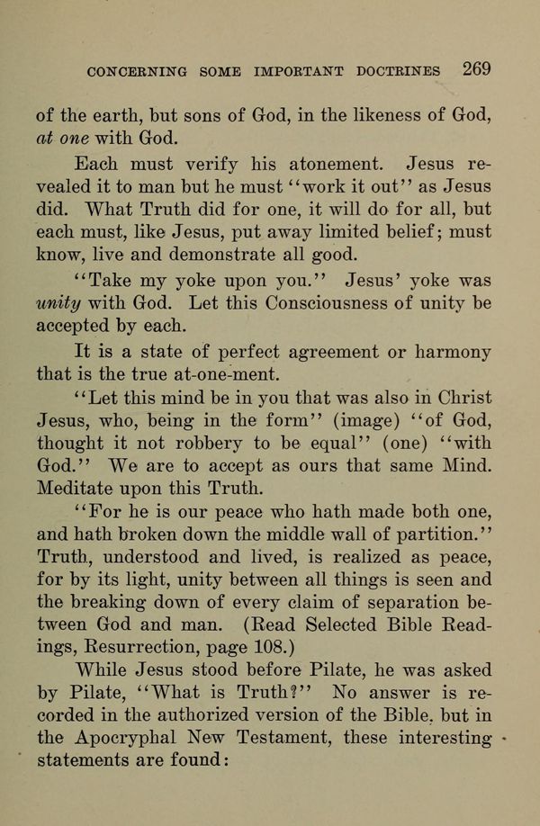 "Take my yoke upon you." Jesus' yoke was unity with God. Let this Consciousness of unity be accepted by each.