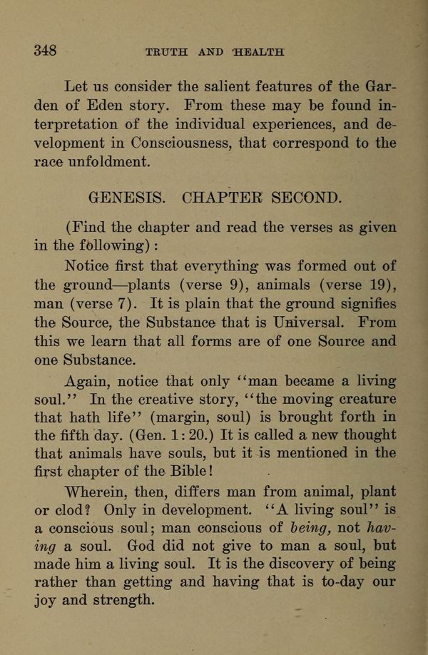 Again, notice that only "man became a living soul." In the creative story, "the moving creature that hath life" (margin, soul) is brought forth in the fifth day. (Gen. 1: 20.) It is called a new thought that animals have souls, but it is mentioned in the first chapter of the Bible!