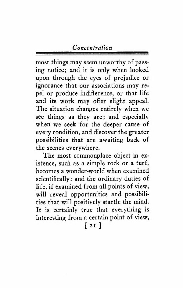 The most commonplace object in existence, such as a simple rock or a turf, becomes a wonder-world when examined scientifically; and the ordinary duties of life, if examined from all points of view, will reveal opportunities and possibilities that will positively startle the mind. It is certainly true that everything is interesting from a certain point of view,