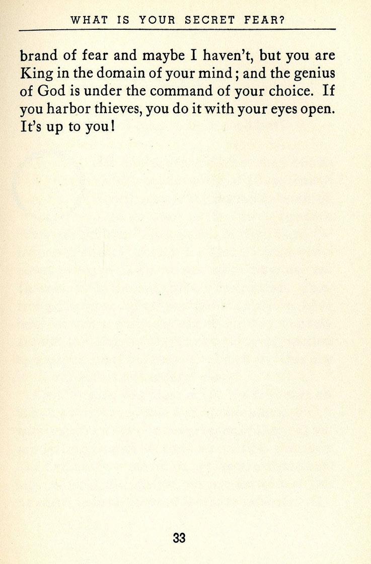 brand of fear and maybe I haven't, but you are King in the domain of your mind; and the genius of God is under the command of your choice. If you harbor thieves, you do it with your eyes open. It's up to you!