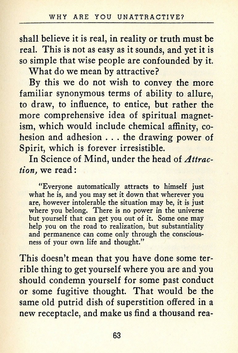 In Science of Mind, under the head of Attraction, we read:
