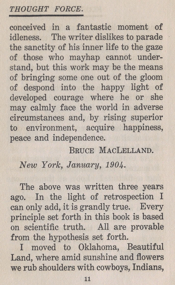 conceived in a fantastic moment of idleness. The writer dislikes to parade the sanctity of his inner life to the gaze of those who mayhap cannot understand, but this work may be the means of bringing some one out of the gloom of despond into the happy light of developed courage where he or she may calmly face the world in adverse circumstances and, by rising superior to environment, acquire happiness, peace and independence.