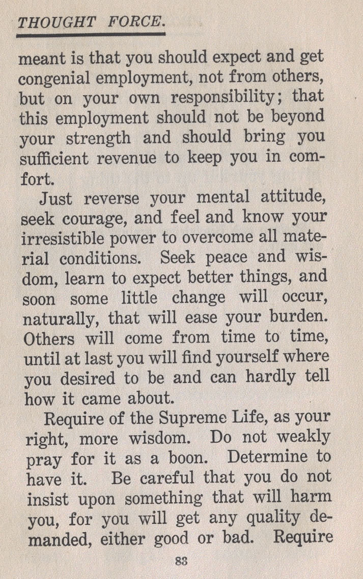 Require of the Supreme Life, as your right, more wisdom. Do not weakly pray for it as a boon. Determine to have it. Be careful that you do not insist upon something that will harm you, for you will get any quality demanded, either good or bad. Require