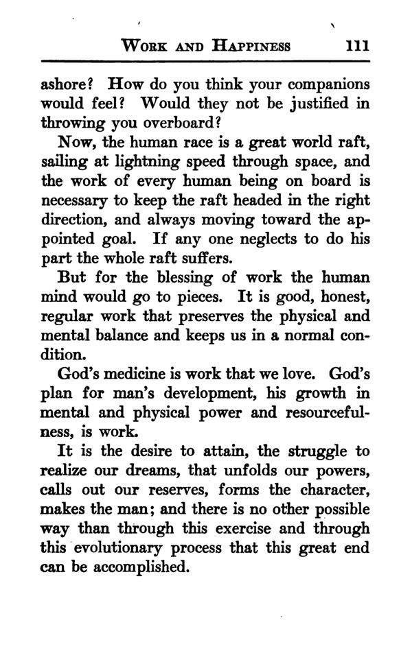 Now, the human race is a great world raft, sailing at lightning speed through space, and the work of every human being on board is necessary to keep the raft headed in the right direction, and always moving toward the appointed goal. If any one neglects to do his part the whole raft suffers.