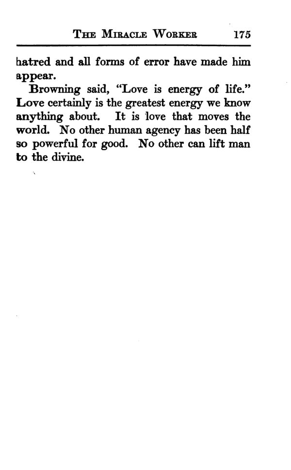 Browning said, "Love is energy of life." Love certainly is the greatest energy we know anything about. It is love that moves the world. No other human agency has been half so powerful for good. No other can lift man to the divine.