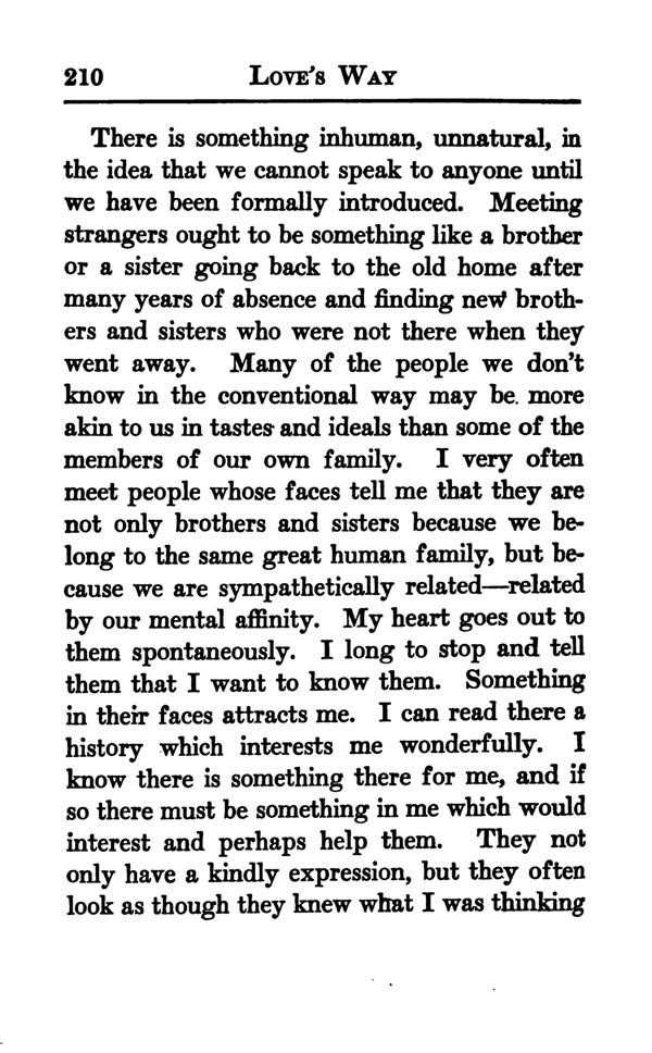 An Invitation - Try Love's Way - The Greatest Thing in the World - Making Life a Song - The Dream of Brotherhood - Driving Away What We Long For Most - Employers and Employers - Spite Fences - Work and Happiness - Practising Love's Way - Training the Child - How to Lighten Your Words - Survival Value - The Miracle Worker - Our Little Brothers and Sisters - The Thing That Makes a Home - "Stranger, Why Should I NOT Speak to you?" - "I Serve the Strongest" - The Daily Orientation - Scatter Your Flowers As You Go - Love Letters From God - The Harmony Bath - Heroism at Home - What the Bee Teaches Us - Love's Way and Christmas Giving - Contents -