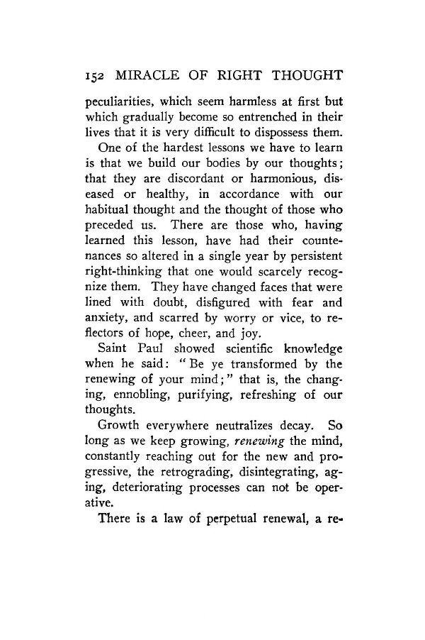 Saint Paul showed scientific knowledge when he said: "Be ye transformed by the renewing of your mind;" that is, the changing, ennobling, purifying, refreshing of our thoughts.