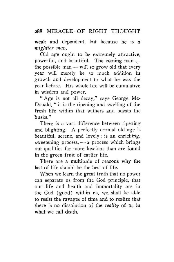 There is a vast difference between ripening and blighting. A perfectly normal old age is beautiful, serene, and lovely; is an enriching, sweetening process, — a process which brings out qualities far more luscious than are found in the green fruit of earlier life.