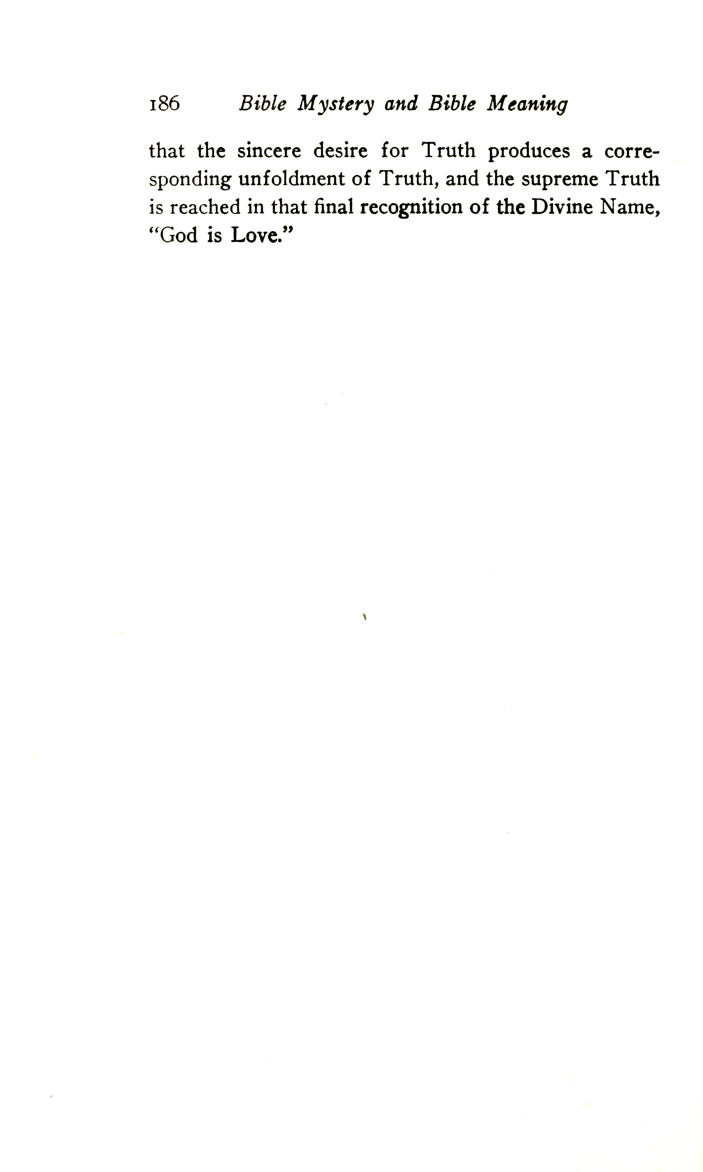 that the sincere desire for Truth produces a corresponding unfoldment of Truth, and the supreme Truth is reached in that final recognition of the Divine Name, "God is Love".