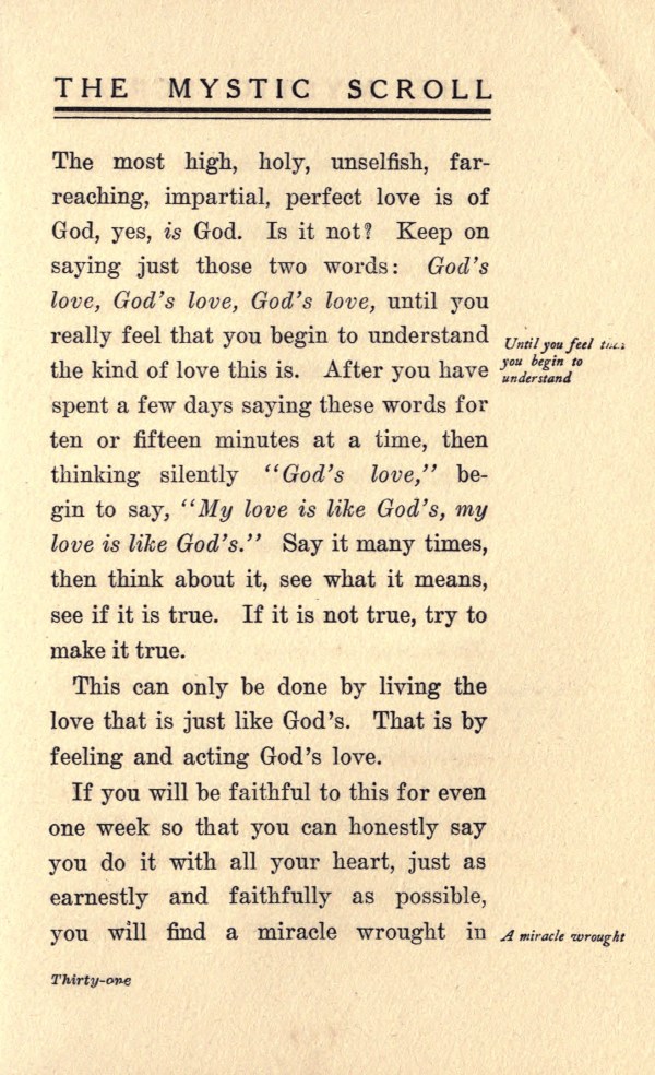 thinking silently "God's love," begin to say, "My love is like God's, my