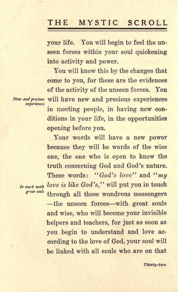 These words: "God's love" and "my love is like God's," will put you in touch through all these wondrous messengers --- the unseen forces --- with great souls