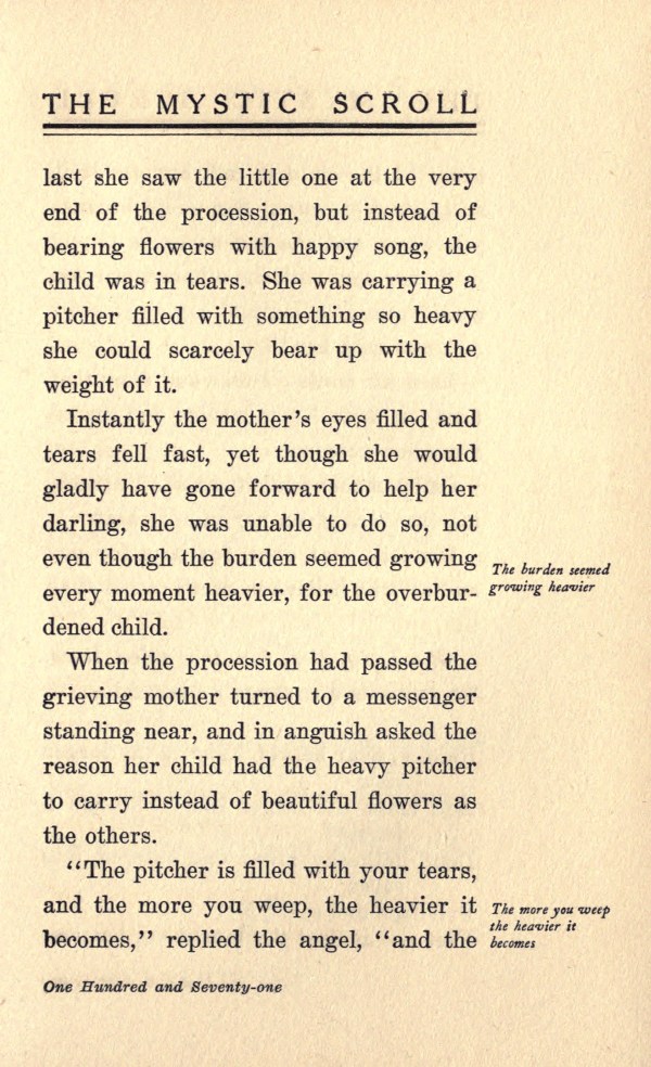 "The pitcher is filled with your tears,