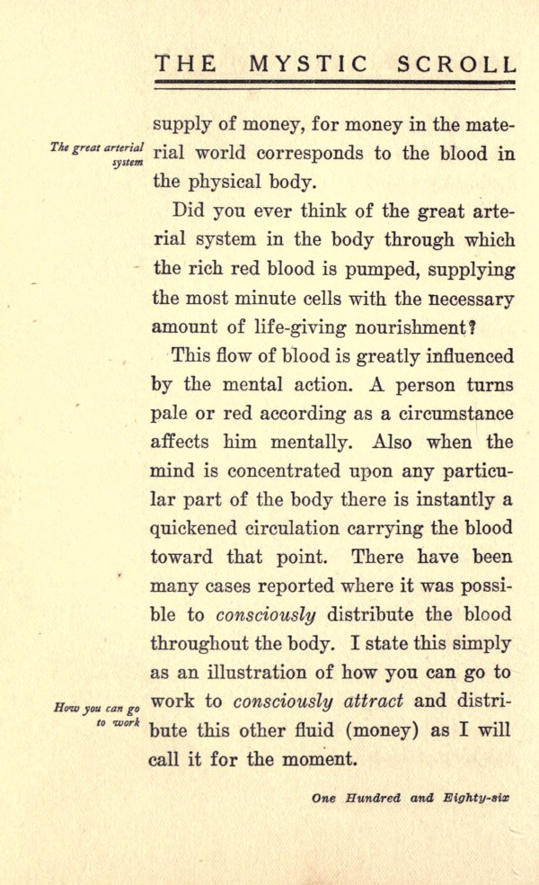 as an illustration of how you can go to work to consciously attract and distribute this other fluid (money) as I will