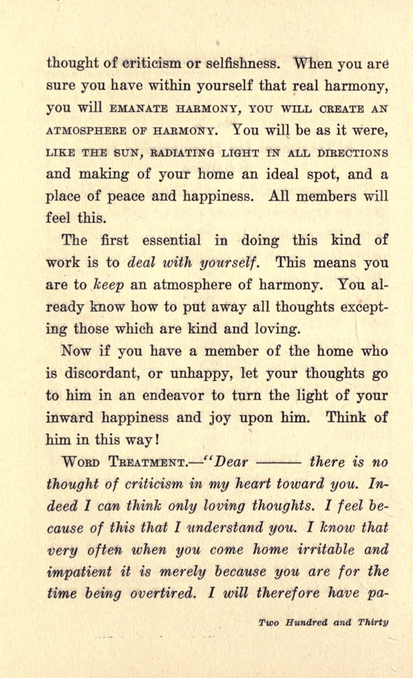 WORD TREATMENT. "Dear there is no thought of criticism in my heart toward you. Indeed 1 can think only loving thoughts. I feel because of this that I understand you. I know that