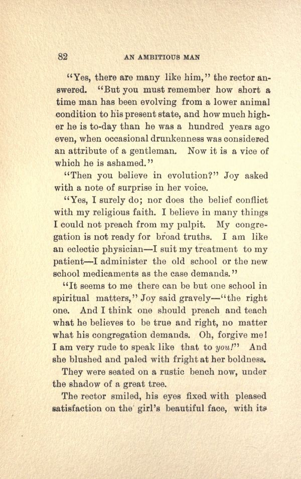 "Yes, there are many like him," the rector answered. "But you must remember bow short a time man has been evolving from a lower animal condition to his present state, and bow much higher he is to-day than be was a hundred years ago even when occasional drunkenness was considered an attribute of a gentleman. Now it is a vice of which be is ashamed."