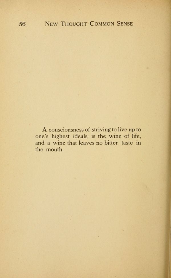 The Ancient Lineage of New Thought - The Anti-toxin of Common Sense - Are You Doing the Best You Can? - Be Not Easily Offended - For What Are You Living? - Ignore Misfortune - The Power of Personality - Common Sense and "Goodness" - "Good Business" - The Trapeze Performer - The High Calling of Fatherhood - The High Calling of Motherhood - Thought Building for Children - The New Thought Economy - What Is a Good Woman? - The Color of Your Thoughts - "In God We Trust" - Are You Alive? - Something About Celibacy - The Old and the New Thought View of Life - The Cities Beyond - The Onward March - Common Sense Ideas in Marriage - The Shading of the Picture - Woman and the Cigarette - Sinning Against the "Holy Ghost" - New Thoughts and Beauty - Famous and Infamous Women - Enemies to Happiness - The New Year - Enthusiasm - Brace Up - Universal Need - Every Day Opportunities - The Masters - Building Kindness Cells - What Is Optimism? - What Is the Loving Thing to Do? - A New Thought Rosary - Unto the End - Keep Still and Wait - What Life Means to Me - Contents - Index