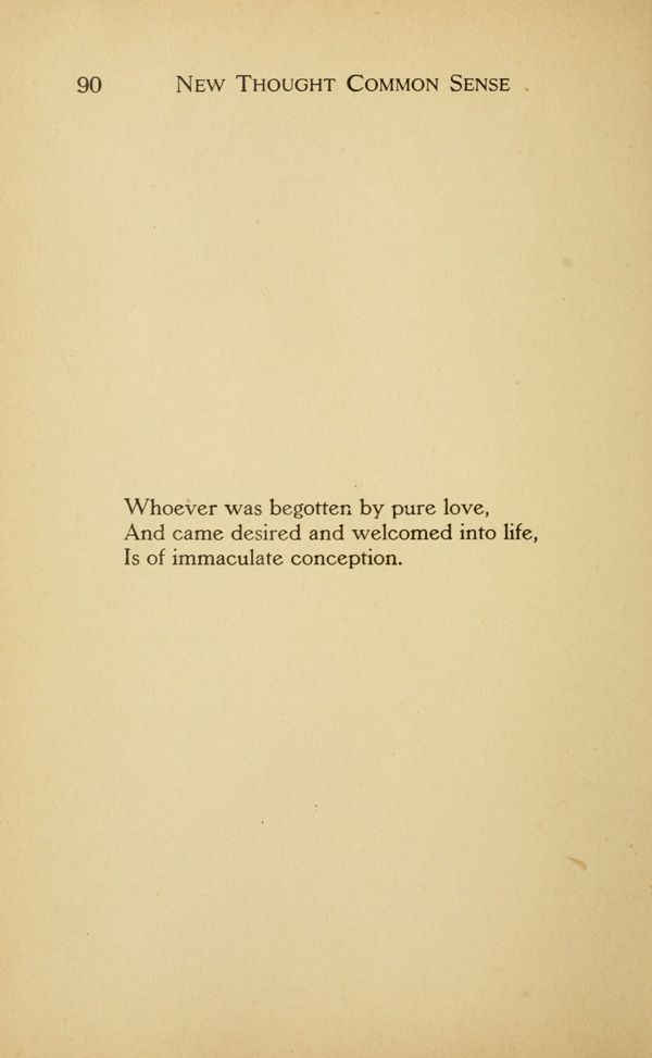 The Ancient Lineage of New Thought - The Anti-toxin of Common Sense - Are You Doing the Best You Can? - Be Not Easily Offended - For What Are You Living? - Ignore Misfortune - The Power of Personality - Common Sense and "Goodness" - "Good Business" - The Trapeze Performer - The High Calling of Fatherhood - The High Calling of Motherhood - Thought Building for Children - The New Thought Economy - What Is a Good Woman? - The Color of Your Thoughts - "In God We Trust" - Are You Alive? - Something About Celibacy - The Old and the New Thought View of Life - The Cities Beyond - The Onward March - Common Sense Ideas in Marriage - The Shading of the Picture - Woman and the Cigarette - Sinning Against the "Holy Ghost" - New Thoughts and Beauty - Famous and Infamous Women - Enemies to Happiness - The New Year - Enthusiasm - Brace Up - Universal Need - Every Day Opportunities - The Masters - Building Kindness Cells - What Is Optimism? - What Is the Loving Thing to Do? - A New Thought Rosary - Unto the End - Keep Still and Wait - What Life Means to Me - Contents - Index