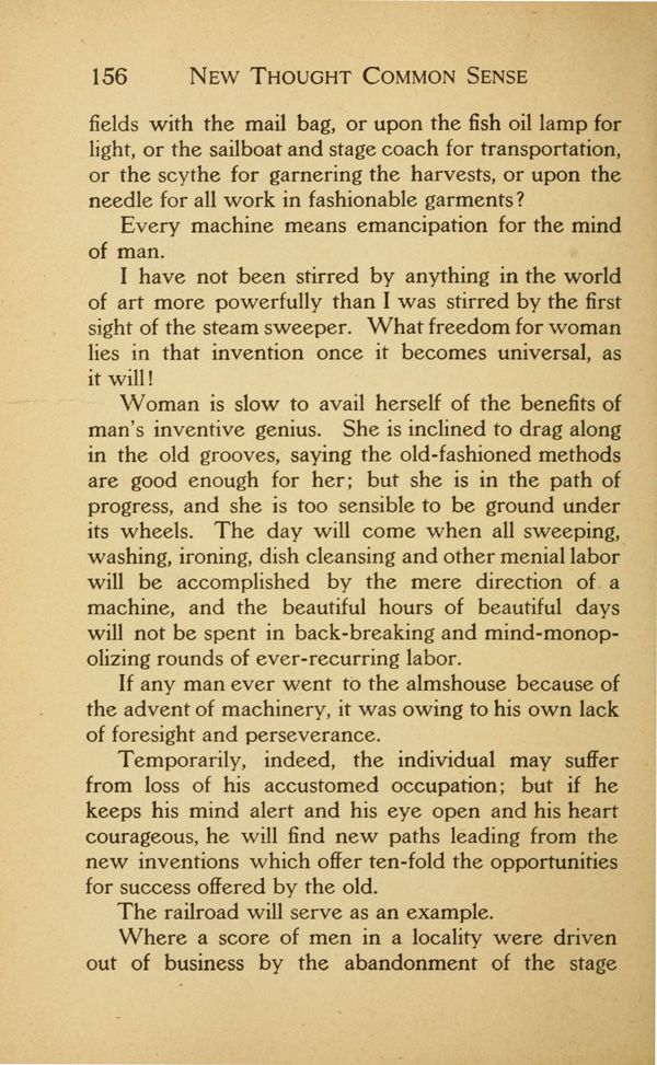 If any man ever went to the almshouse because of the advent of machinery, it was owing to his own lack of foresight and perseverance.