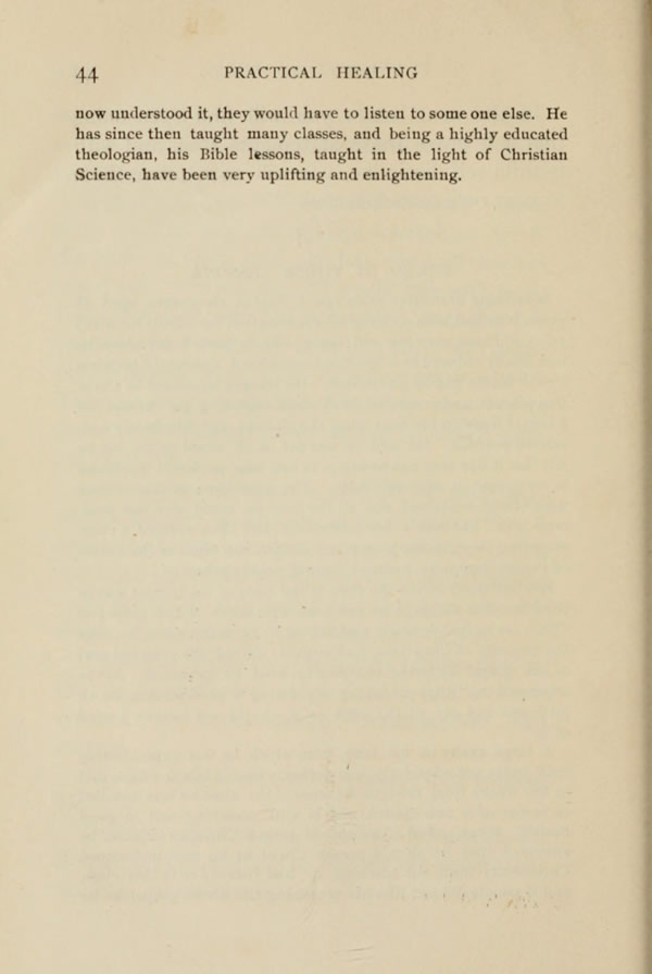 he now understood it, they would have to listen to some one else. He has since then taught many classes, and being a highly educated theologian, his Bible lessons, taught in the light of the new Science, have been very uplifting and enlightening.