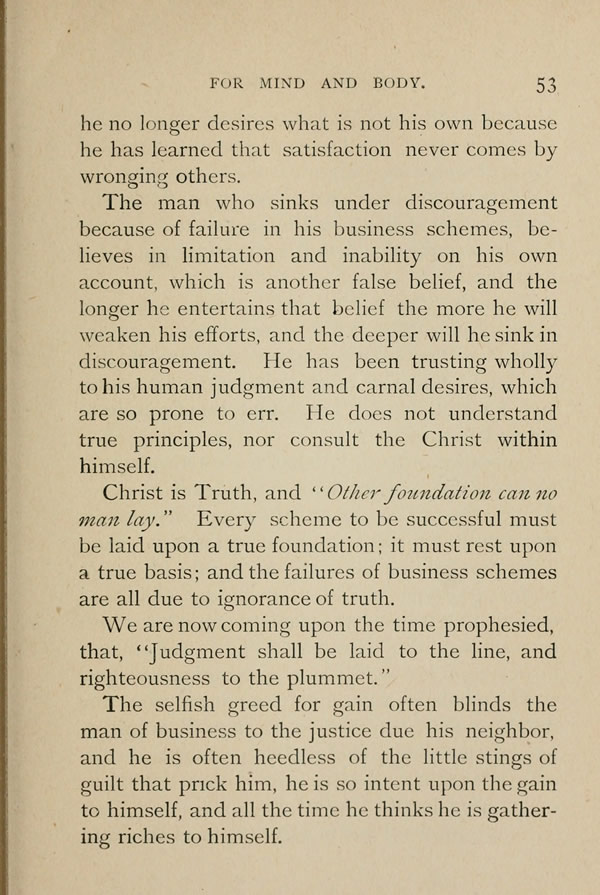 Christ is Truth, and "Other foundation can no man lay." Every scheme to be successful must be laid upon a true foundation; it must rest upon a true basis; and the failures of business schemes are all due to ignorance of truth.