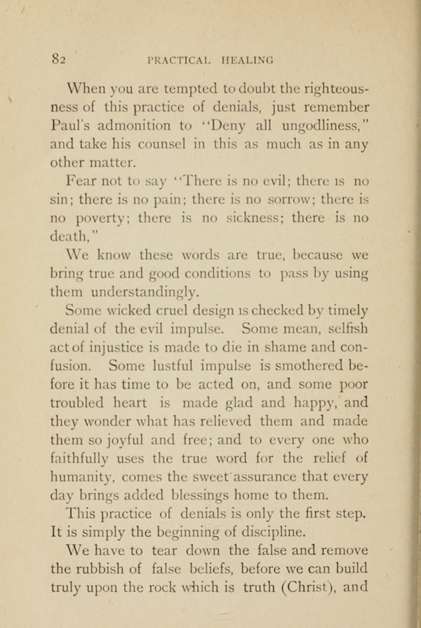 When you are tempted to doubt the righteousness of this practice of denials, just remember Paul's admonition to "Deny all ungodliness," and take his counsel in this as much as in any other matter.