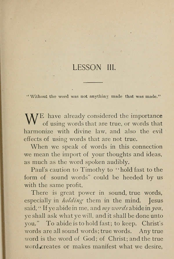 We have already considered the importance of using words that are true, or words that harmonize with divine law, and also the evil effects of using words that are not true.