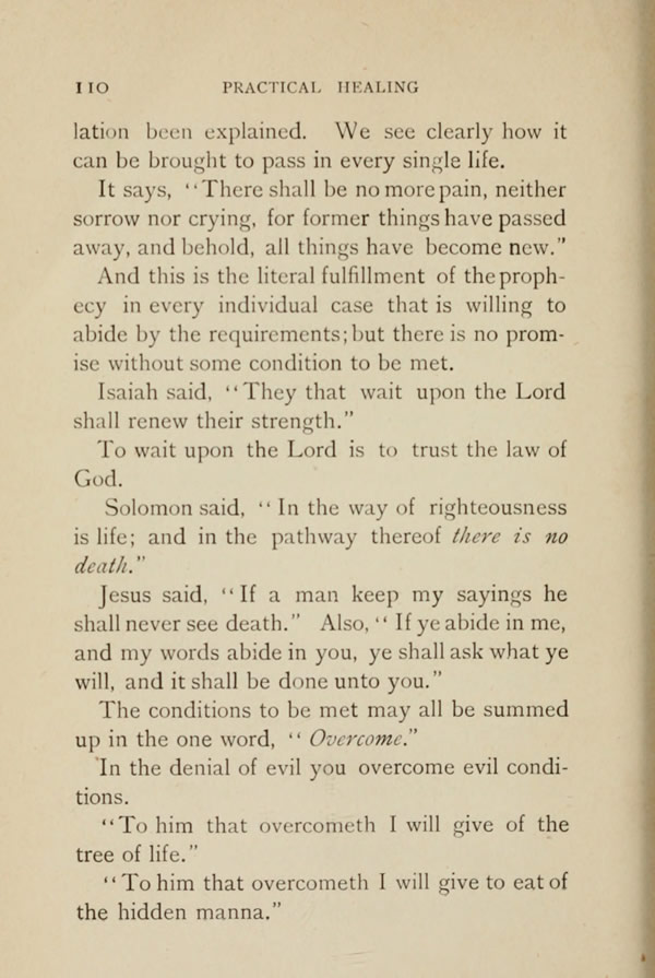 In the denial of evil you overcome evil conditions. "To him that overcometh I will give of the tree of life." "To him that overcometh I will give to eat of the hidden manna."