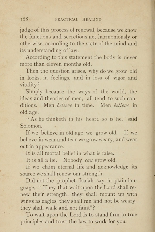 If we believe in old age we grow old. If we believe in wear and tear we grow weary, and wear out in appearance.