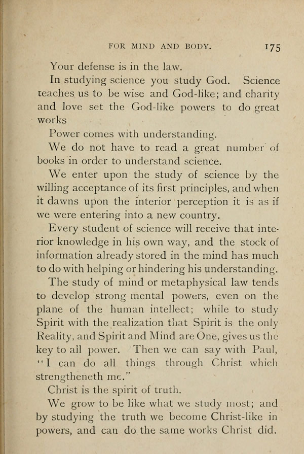 The study of mind or metaphysical law tends to develop strong mental powers, even on the plane of the human intellect; while to study Spirit with the realization that Spirit is the only Reality, and Spirit and Mind are One, gives us the key to all power. Then we can say with Paul, "I can do all things through Christ which strengtheneth me."