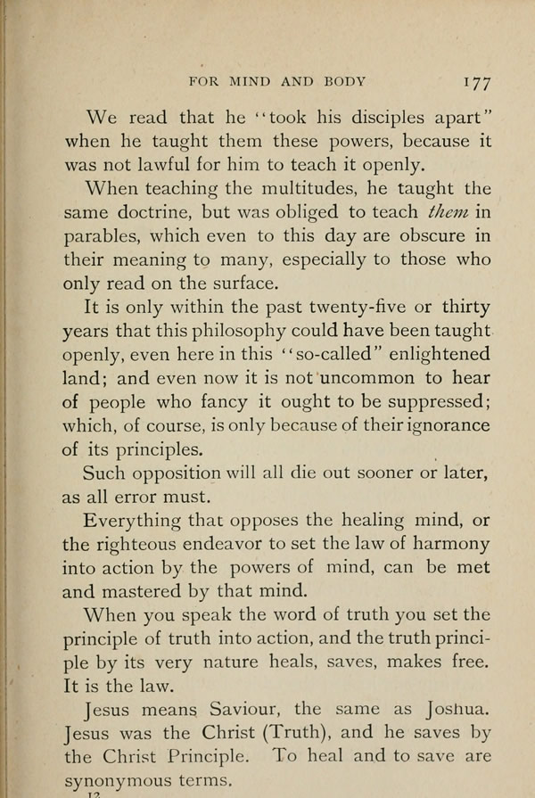 It is only within the past twenty-five or thirty years that this philosophy could have been taught openly, even here in this "so-called" enlightened land; and even now it is not uncommon to hear of people who fancy it ought to be suppressed; which, of course, is only because of their ignorance of its principles.