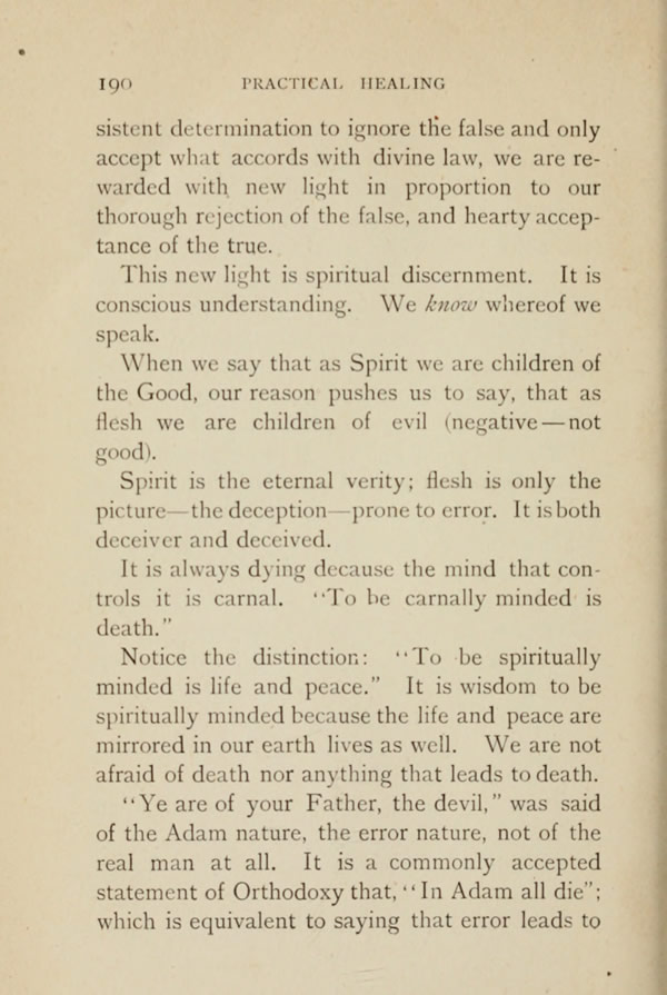 "Ye are of your Father, the devil," was said of the Adam nature, the error nature, not of the real man at all. It is a commonly accepted statement of Orthodoxy that, "In Adam all die"; which is equivalent of saying that error leads to