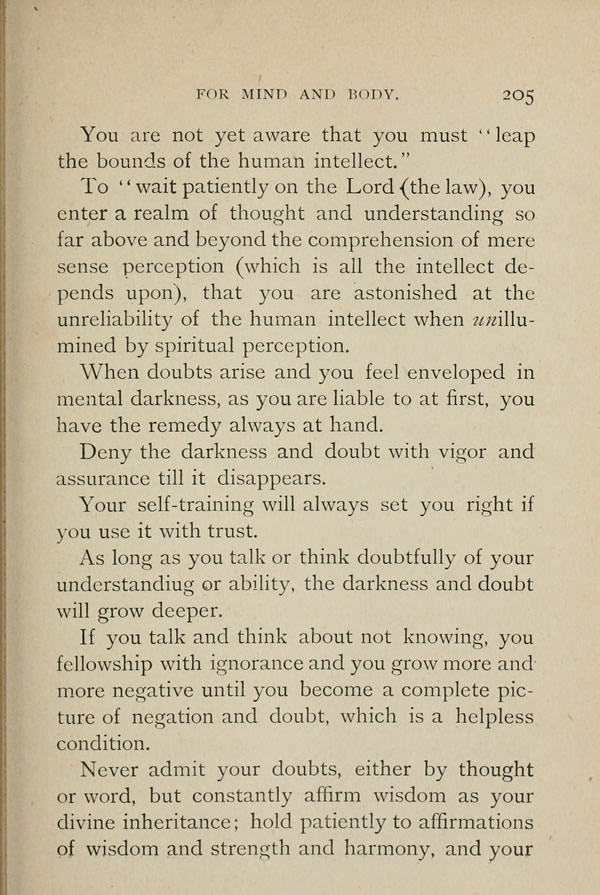 When doubts arise and you feel enveloped in mental darkness, as you are liable to at first, you have the remedy always at hand.