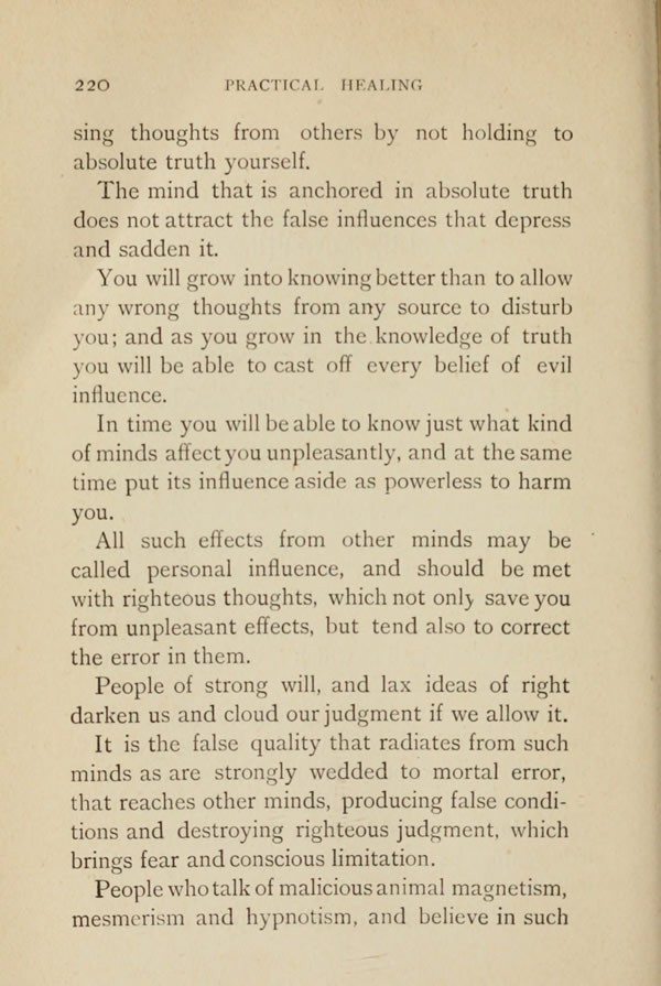 All such effects from other minds may be called personal influence, and should be met with righteous thoughts, which not only save you from unpleasant effects, but tend also to correct the error in them.