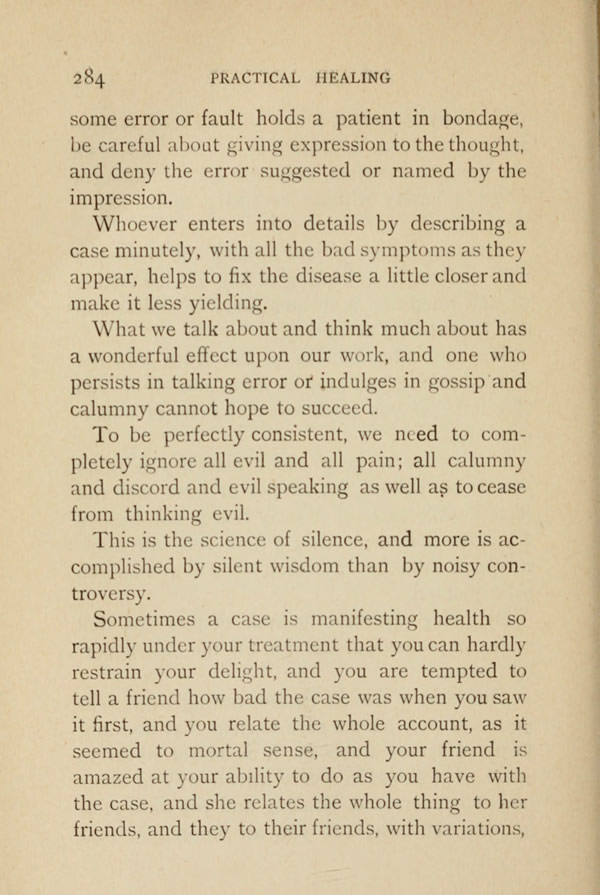 some error or fault holds a patient in bondage, be careful about giving expression to the thought, and deny the error suggested or named by the impression.