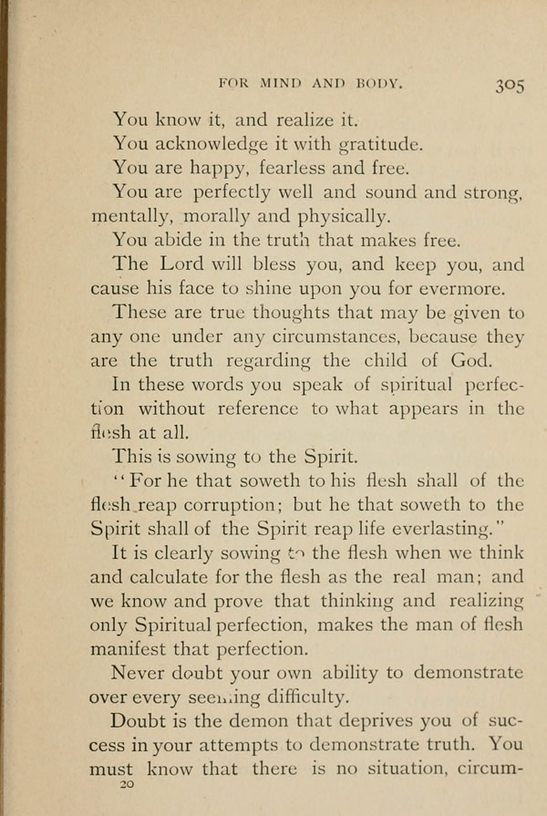 You know it, and realize it. You acknowledge it with gratitude. You are happy, fearless and free. You are perfectly well and sound and strong, mentally, morally and physically. You abide in the truth that makes free. The Lord will bless you, and keep you, and cause His face to shine upon you for evermore.
