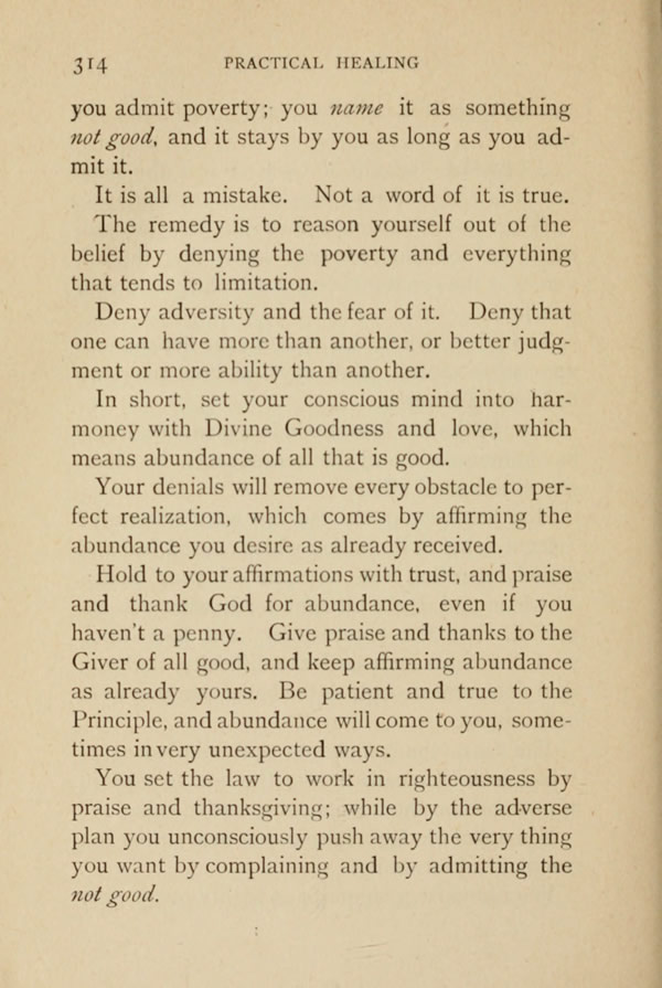 The remedy is to reason yourself out of the belief by denying the poverty and everything that tends to limitation.