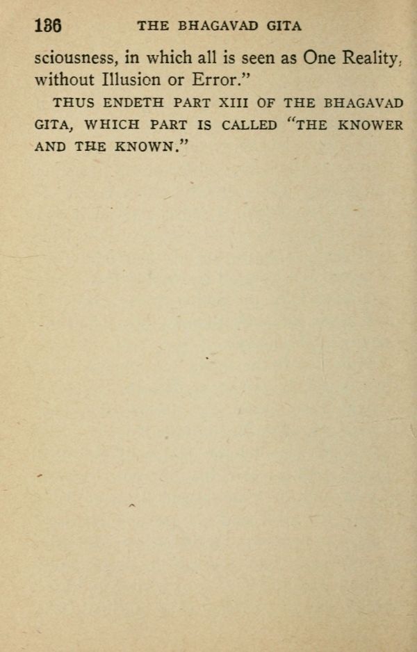 THUS ENDETH PART XIII OF THE BHAGAVAD GITA, WHICH PART IS CALLED "THE KN0WER AND THE KNOWN."