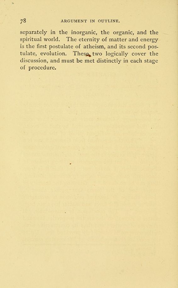 Contents - Nature of God - p. 7 - Being of God; Unsatisfactory forms of proof - page 28 - The Argument in Outline for the Being of God - page 46 - Proof of the Being of God Found in the Organic World - page 79 - Proof of the Being of God Found in the Vegetable Kingdom - page 122 - Proof of the Being of God Found in the Animal Kingdom - page 159 - Proof of the Being of God Found in the Rational Kingdom - page 190 - The Proofs of the goodness of God - page 261 - Immortality - page 288 Index