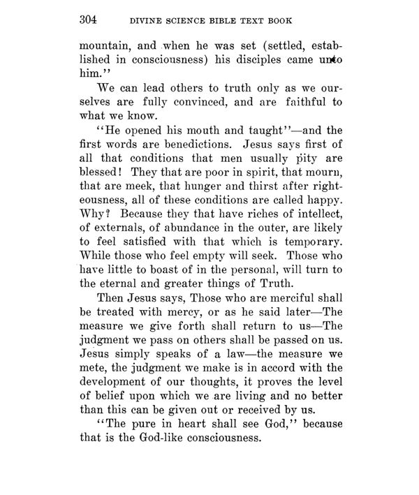 Then Jesus says, Those who are merciful shall be treated with mercy, or as he said later --- The measure we give forth shall return to us --- The judgment we pass on others shall be passed on us. Jesus simply speaks of a law --- the measure we mete, the judgment we make is in accord with the development of our thoughts, it proves the level of belief upon which we are living and no better than this can be given out or received by us.