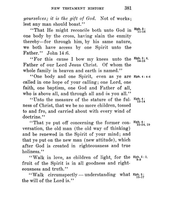 Eph. 2:11-16 Eph. 3: 8, 14-15 Eph. 4: 4-6 Eph. 4:13-14 Eph. 4:22-24, 29 Eph. 5: 2, 8-9 Eph. 5: 15-17 |