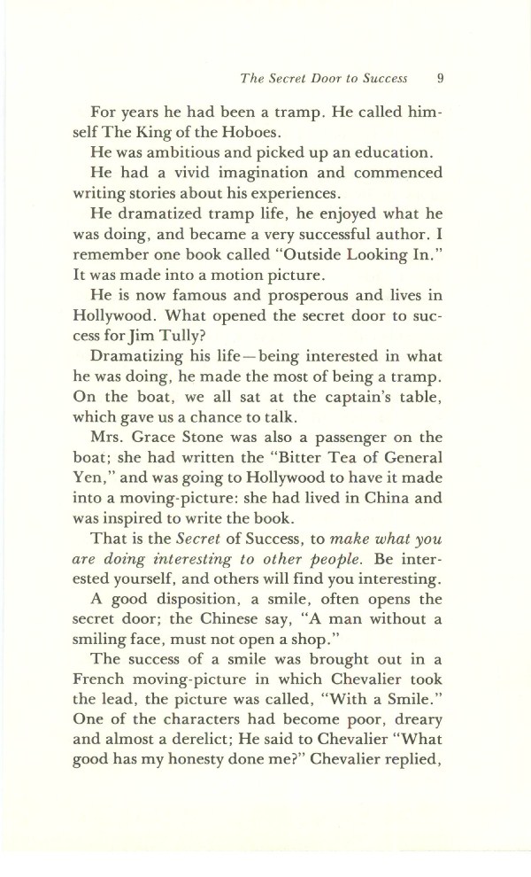 That is the Secret of Success, to make what you are doing interesting to other people. Be interested yourself, and others will find you interesting.