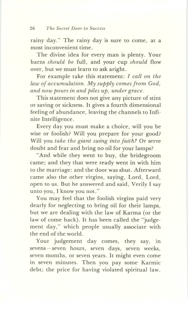 For example take this statement: I call on the law of accumulation. My supply comes from God, and now pours in and piles up, under grace.
