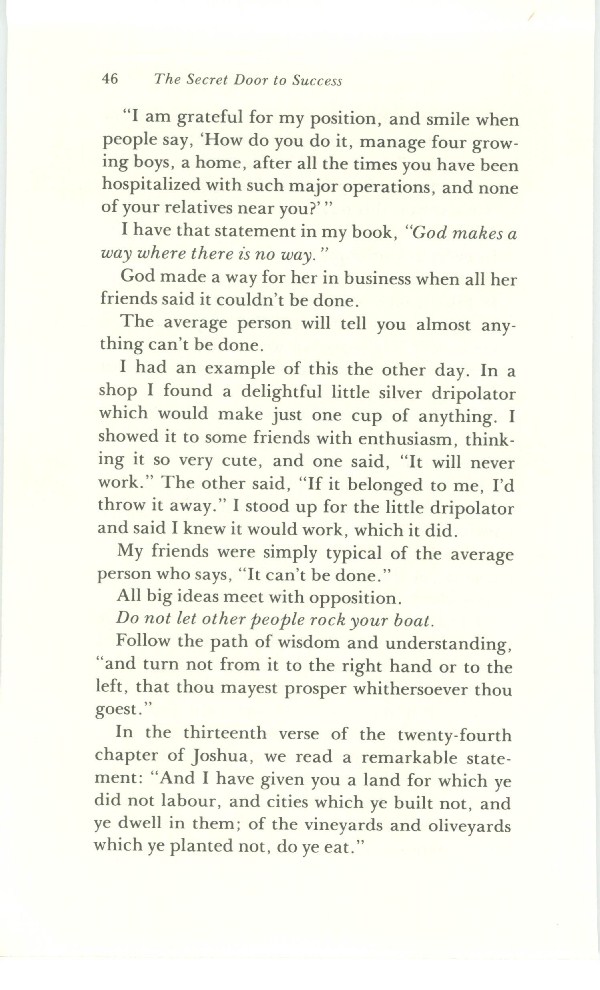 I have that statement in my book, "God makes a way where there is no way."