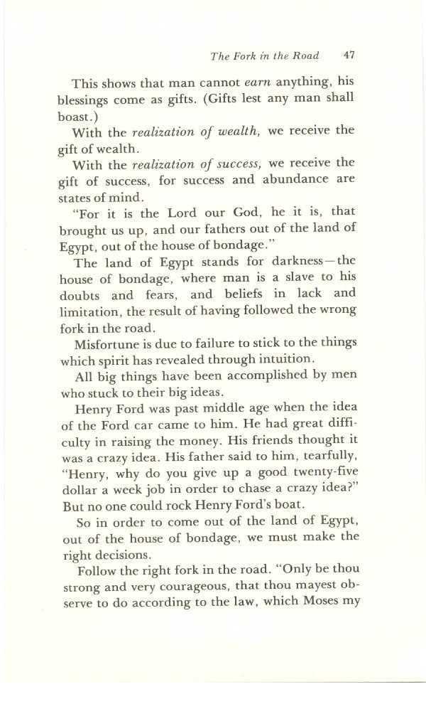 The land of Egypt stands for darkness - the house of bondage, where man is a slave to his doubts and fears, and beliefs in lack and limitation, the result of having followed the wrong fork in the road.