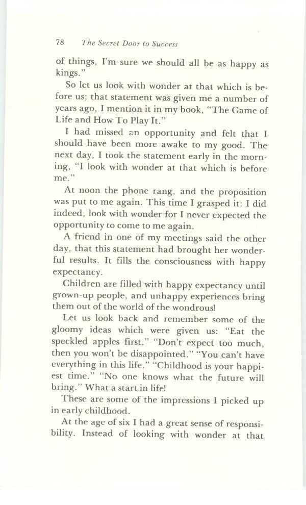 So let us look with wonder at that which is before us; that statement was given me a number of years ago, I mention it in my book, "The Game of Life and How To Play It."