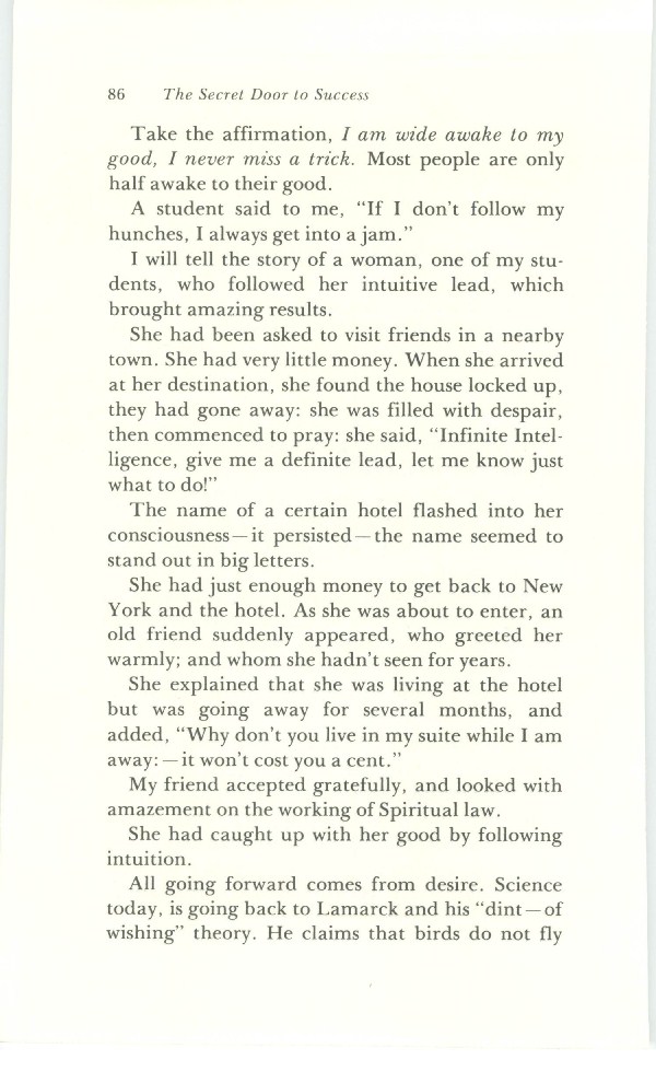 The Secret Door to Success - Bricks Without Straw - And Five of Them Were Wise - What Do You Expect? - The Long Arm of God - The Fork in the Road - Crossing Your Red Sea - Watchman at the Gate - Way of Abundance - I Shall Never Want - Look With Wonder - Catch Up with Your Good - Rivers in the Desert - The Inner Meaning of Snow White and the Seven Dwarves - Contents -