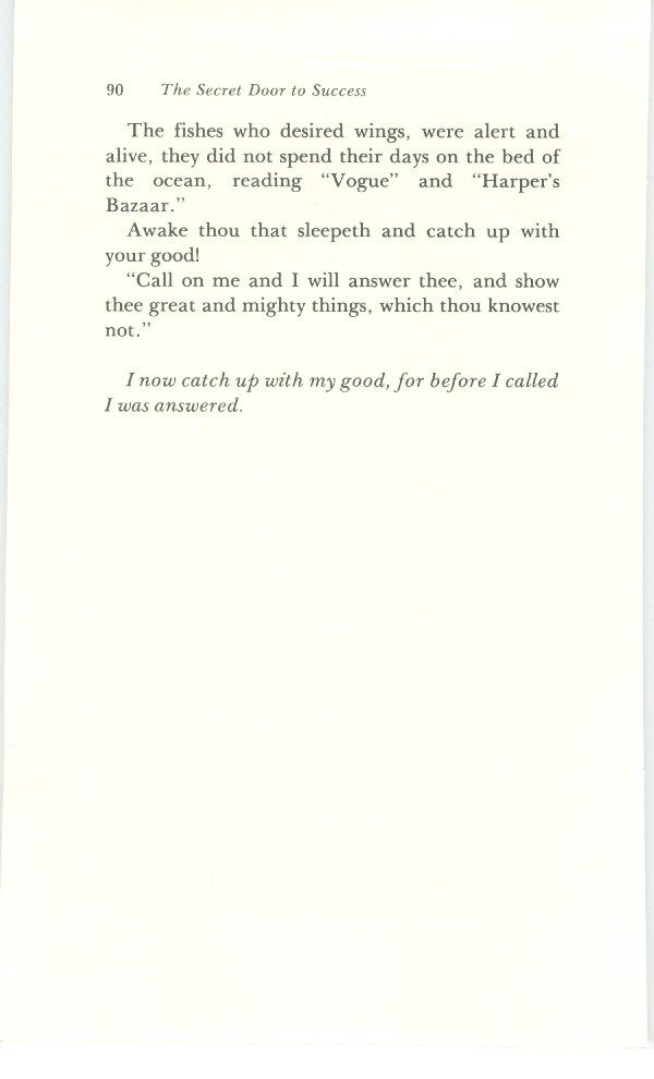 The Secret Door to Success - Bricks Without Straw - And Five of Them Were Wise - What Do You Expect? - The Long Arm of God - The Fork in the Road - Crossing Your Red Sea - Watchman at the Gate - Way of Abundance - I Shall Never Want - Look With Wonder - Catch Up with Your Good - Rivers in the Desert - The Inner Meaning of Snow White and the Seven Dwarves - Contents -